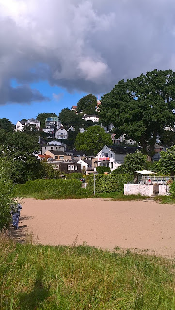 And then I went off to Hamburg - such a pretty city! There's lots of brick and glass and water, and yesterday we ran right into some sort of food festival going on around the river, and today we drove out to the beach and walked some very steep stairways (sometimes I realize just how long I haven't exercised. Then I usually sit down and forget all about it). See for yourself (only the beach part though, 'cause I forgot to bring my camera transfer cable):