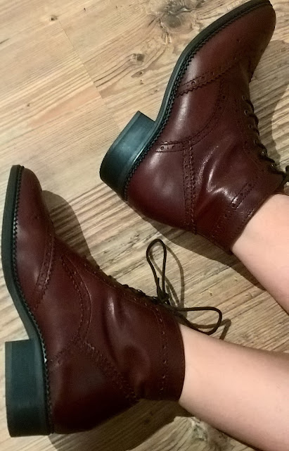Last but not least, I bought new shoes. They're brown, and when I saw them in the store and they didn't have them in my size in black, I asked myself: Don't I need a pair of brown shoes? Because you see, the only ones I own are my cowboy boots, and they're not exactly everyday-wear (but I should get them out more often, thinking about it). And I am a firm believer in the theory that you should have a list of staples that you're sure you'll be needing in your life so that you won't feel bad when you splurge on them because you have valid arguments that support your decision.